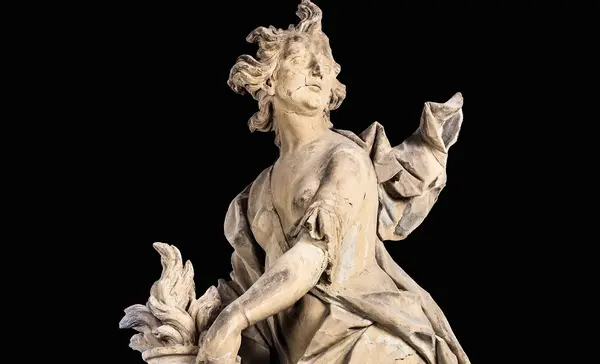Feuer ist ein Grundbaustein der Welt – so der Gedanke der „Vier-Elemente-Lehre“. Eine detailreiche Statue verkörpert das brennende Element.